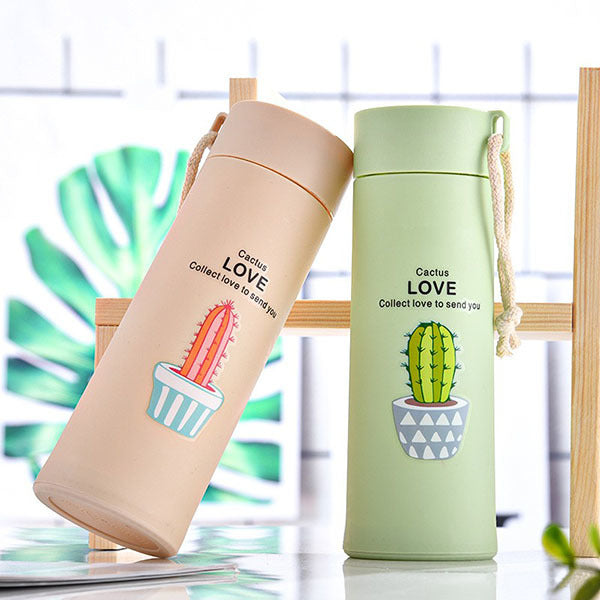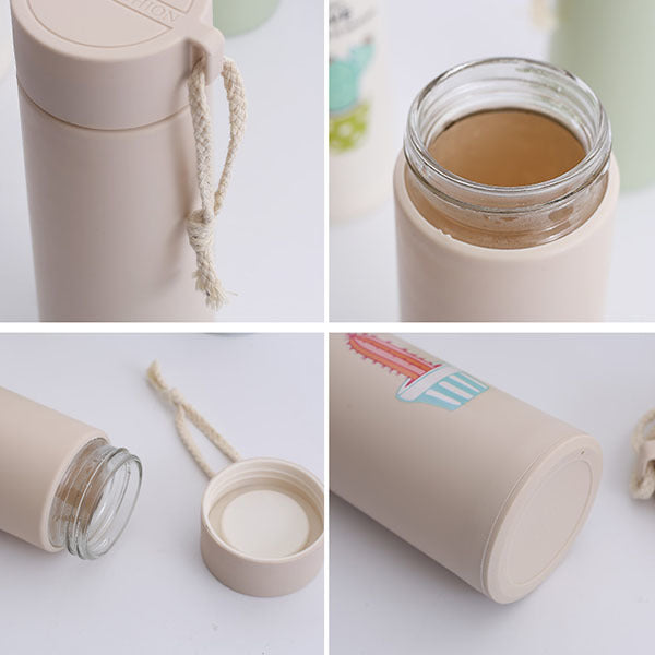 400ml旋蓋式PP+加厚玻璃-雙層隨手杯-附掛繩
