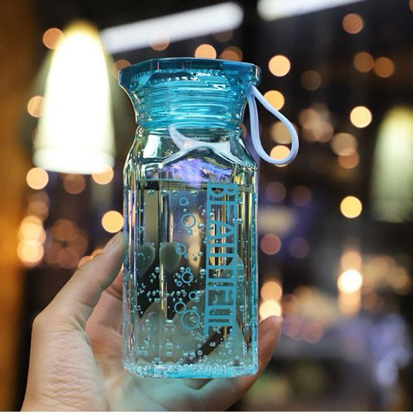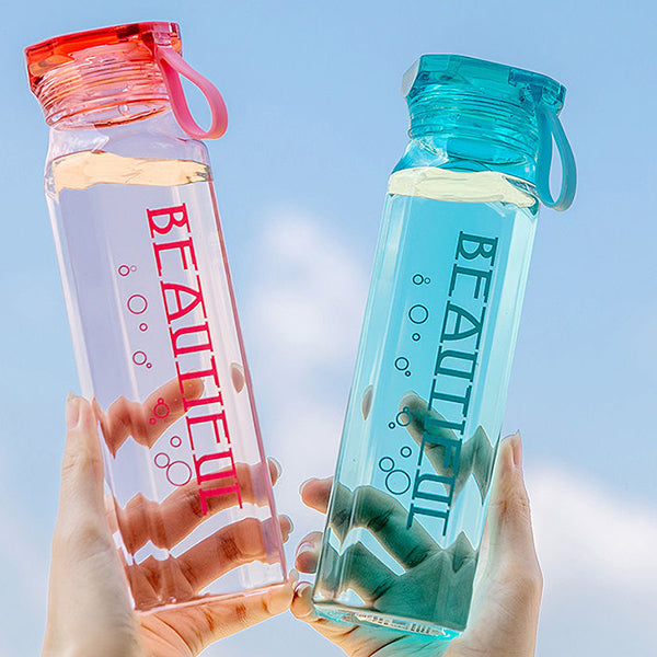 1. 550ml/350ml韓版小清新環保玻璃隨手杯,方形杯身設計,握感舒適,攜帶方便。、
