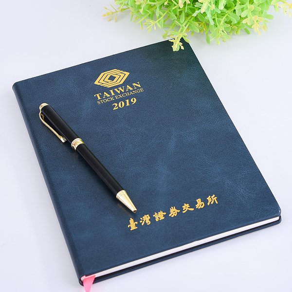1. 25K時尚精緻壓紋PU筆記本,封面燙金設計,高雅大方。