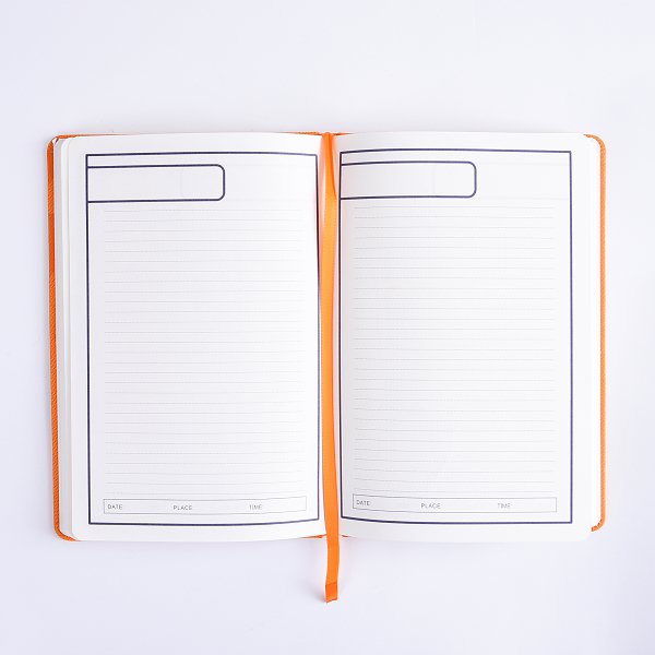 2. 此PU筆記本尺寸為正A5,適合商務使用,內頁採用80g米黃紙,印刷清晰,左翻精裝設計,質感優雅。