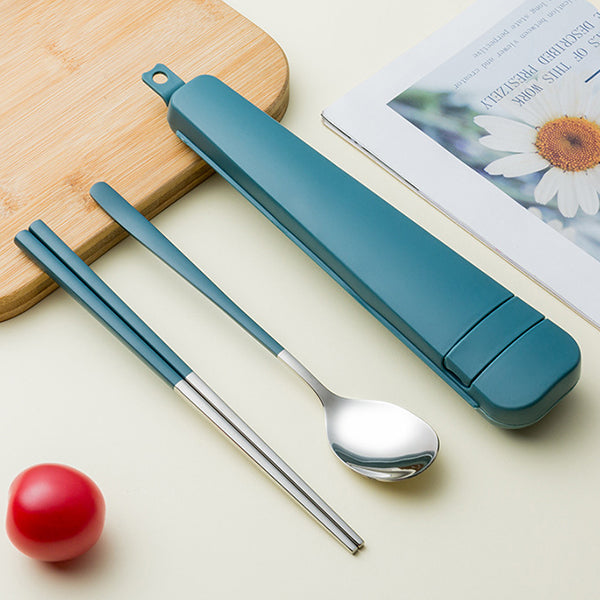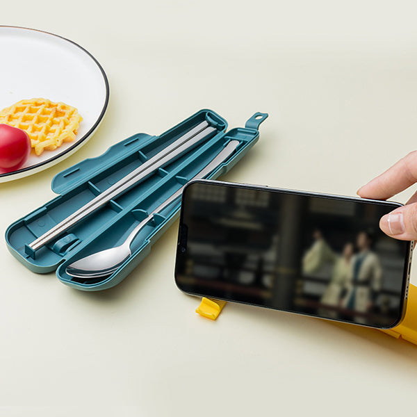 2件組|304不鏽鋼餐具|塑膠收納盒(靜音卡扣)