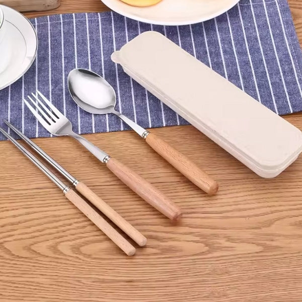 - 三件組餐具,筷子、叉子、湯匙,外出用餐方便。