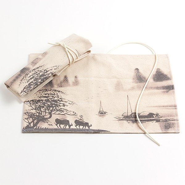 捲式餐具袋-本白帆胚布-單面彩色印刷