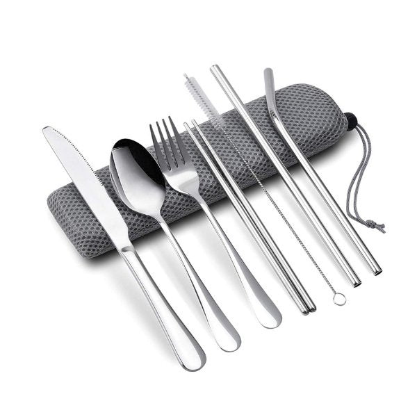 - 不鏽鋼餐具7件組,輕巧便攜,適合外出用餐或旅行使用。