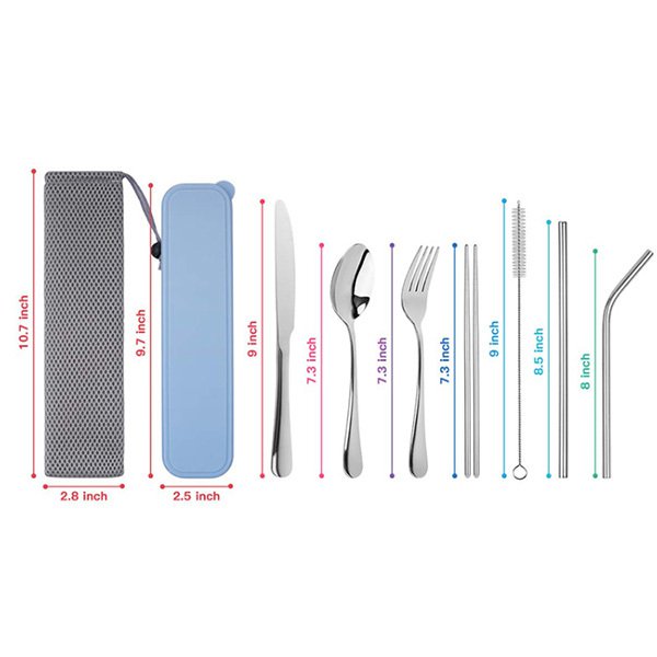 - 包含吸管、刷子、筷子、叉子、湯匙、刀子等,滿足各種用餐需求。