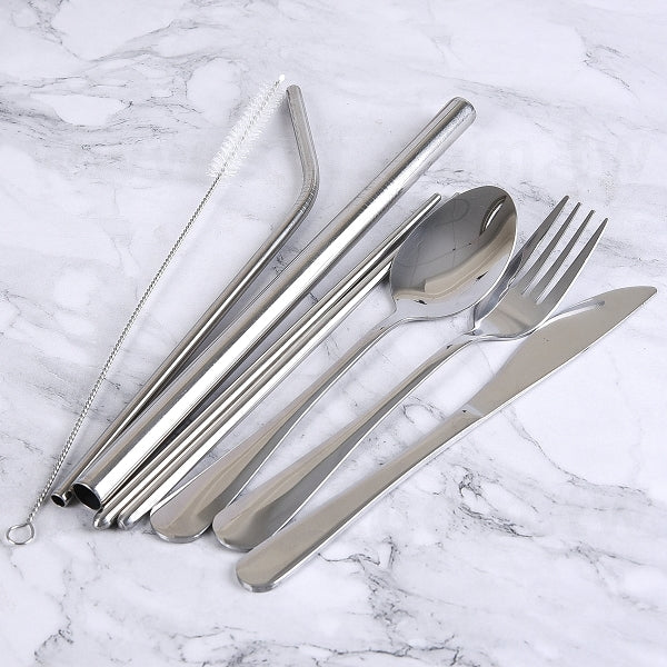 7件組|不鏽鋼餐具|匙.筷.刀.叉.刷子.吸管x2
