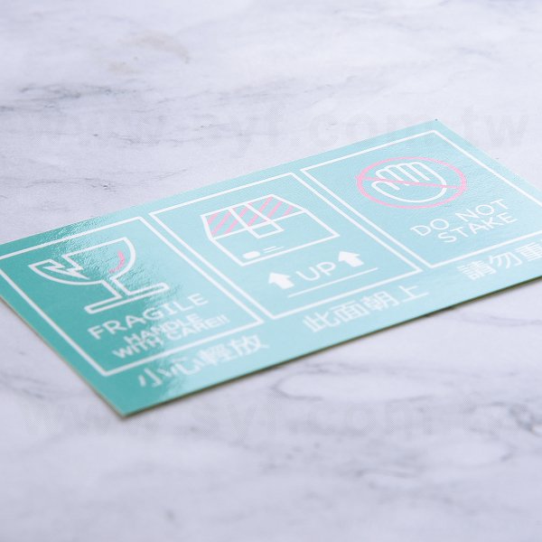 2. 名片型貼紙,尺寸可自訂,厚度約80g,數量500張起印。