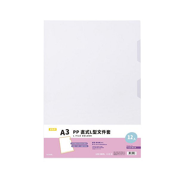 A3白色透明L夾-厚度0.15mm(12入/包)