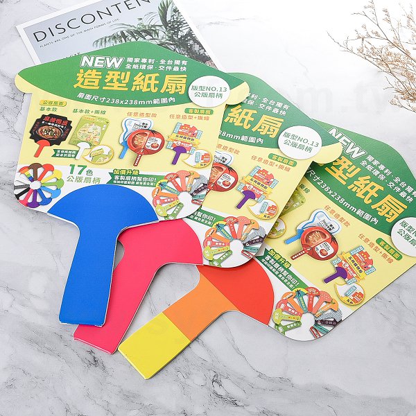 1. 環保紙扇,採用環保卡紙製成,環保又時尚,適合企業禮贈品或活動贈品使用。