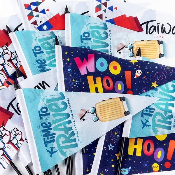 1. 全彩三角手搖旗採用100%聚酯纖維製成,尺寸為23.3 x 15.2 cm,適合各種場合使用。