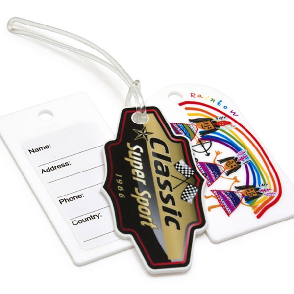 1. 大型造型行李吊牌,3mm厚壓克力製成,可客製切型,印刷彩色圖像或商標。