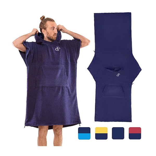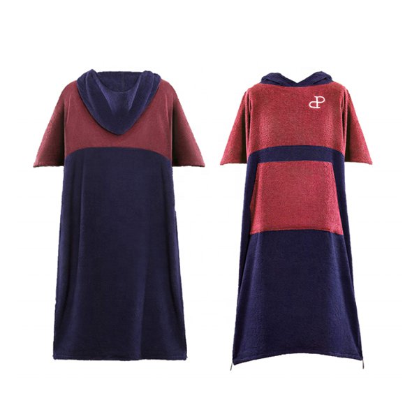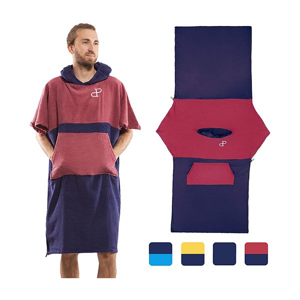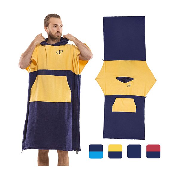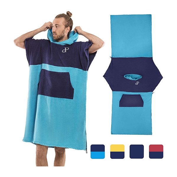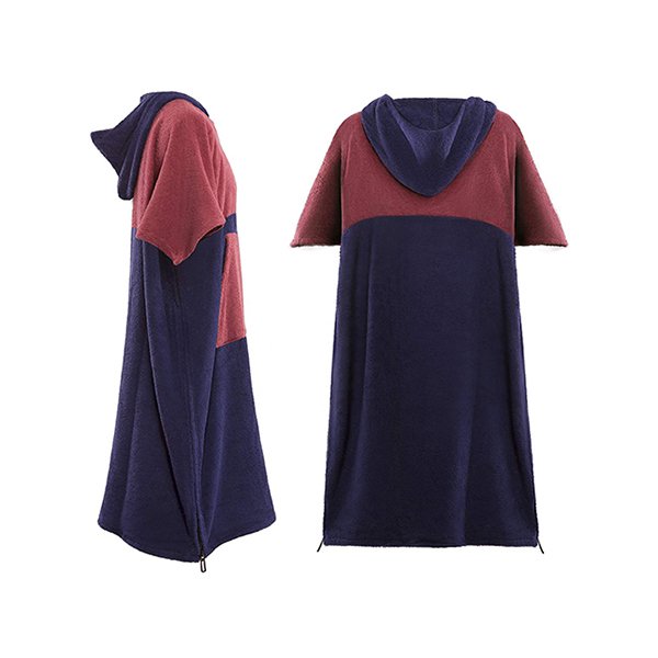 撞色大口袋款斗篷沙灘毛巾衣-超細纖維連帽浴巾