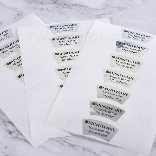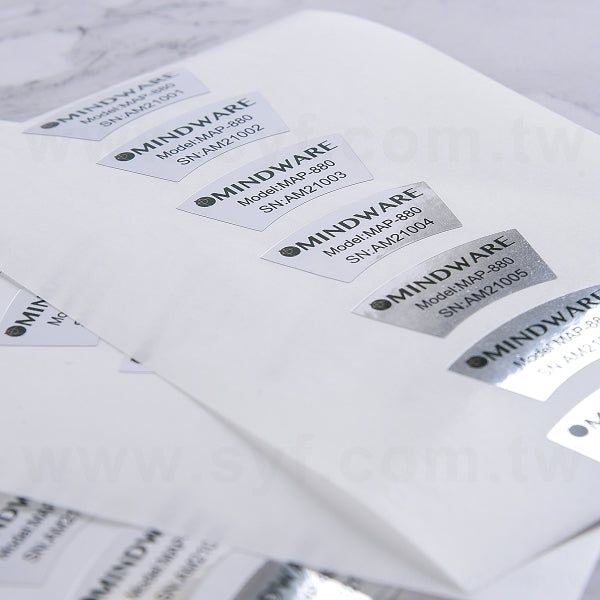 金屬貼紙(亮銀龍)+雷射切割+流水編號-貼紙印刷