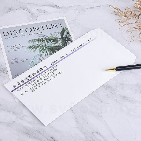 1. 道林紙中式12K彩色信封,材質包含道林紙、米色道林紙、劃刊紙、骨紋紙、美術紙,尺寸為中式12K,厚度選擇有80g至140g。製作時間為5天。