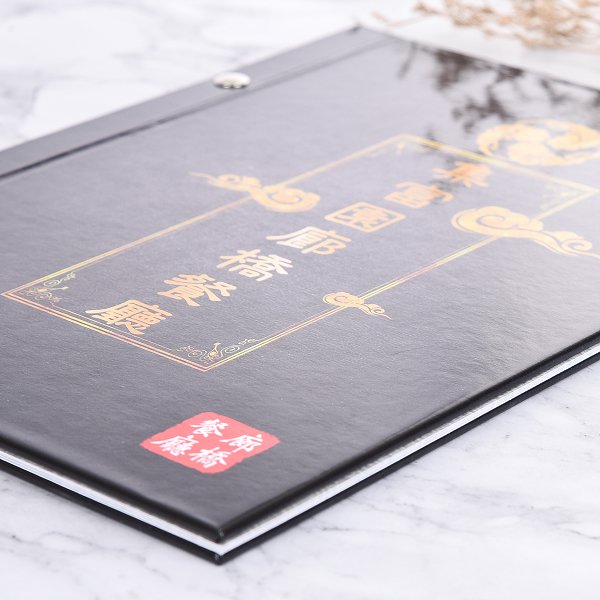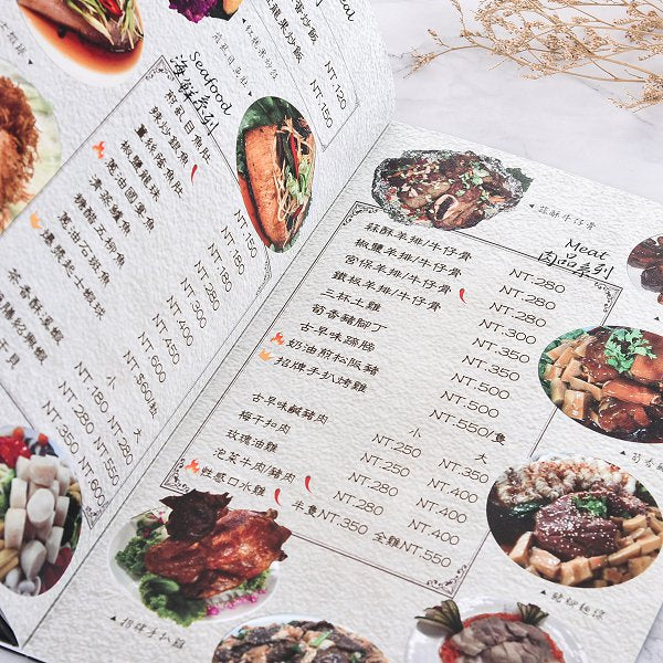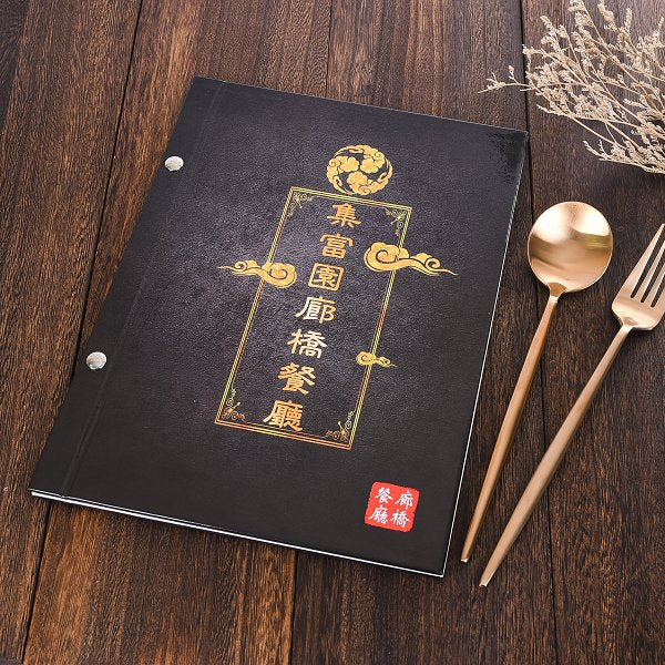 精緻菜單型錄-精裝封面300g銅西 鉚釘/材質尺寸可選-彩色印刷