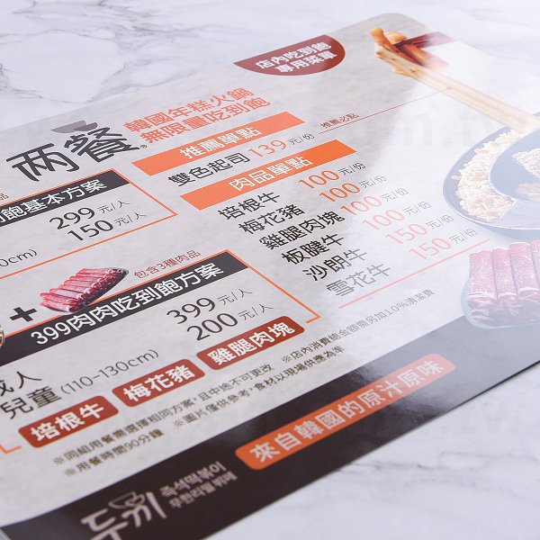 400P-合成墊板菜單+雙面上亮或霧膜-雙面印刷(同41BA-0003)