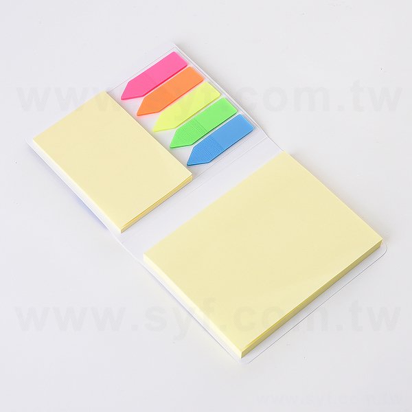 三合一銅版紙封面款便利貼-封面彩印(亮膜)導圓角-尖頭PET五色標(同53AA-1139)