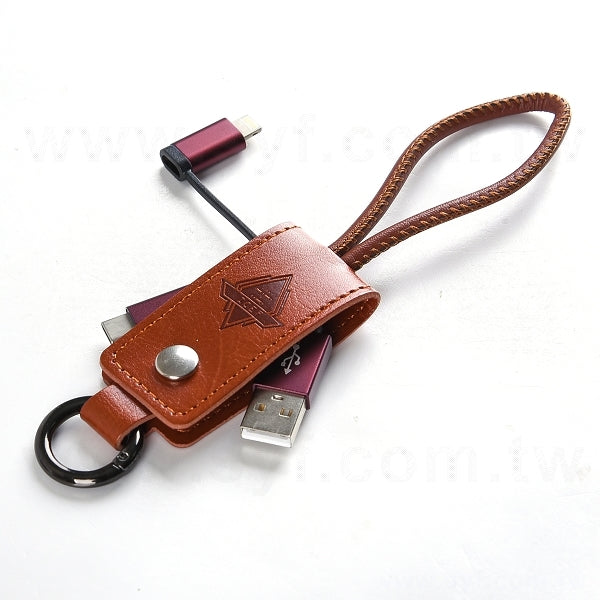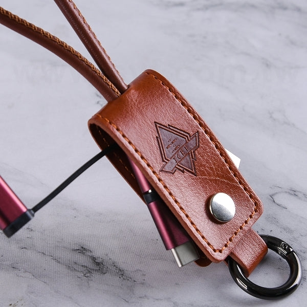 三合一皮革鑰匙圈-伸縮拉繩充電線