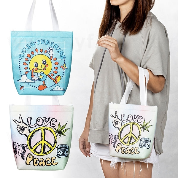 不織布袋單片式3面款式(梯形袋),內裡2mm厚保溫鋁膜,開口拉鍊。全彩滿版印刷在袋身兩面與底部,好設計,廣告效益大。