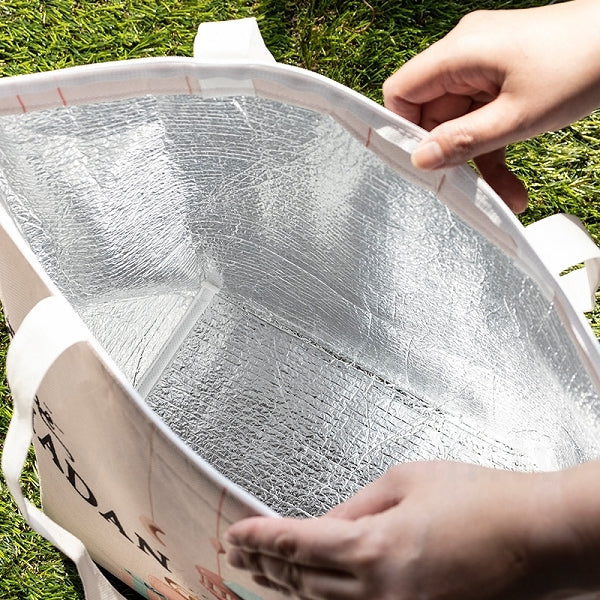 大型尺寸保溫保冰購物袋(肩背包),容量大,適合購物野餐野營使用。2mm厚保溫鋁膜保溫保冰效果佳。是您夏冬皆宜的活動贈品。也可為食品糕點業者或超市大賣場量製消費者之購物包裝,增加附加價值。適合週年慶或滿額促銷贈品。