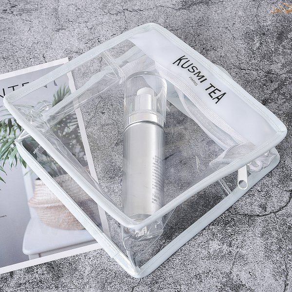 1. 時尚風透明化妝包,適合商務人士使用,可印刷公司logo,展現專業形象。