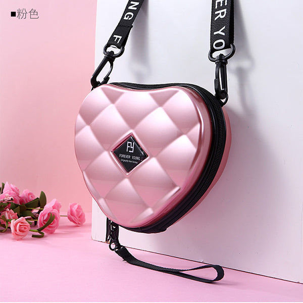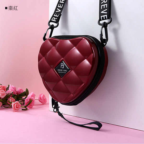 迷你行李箱旅遊化妝包/硬殼包-愛心款菱形格紋