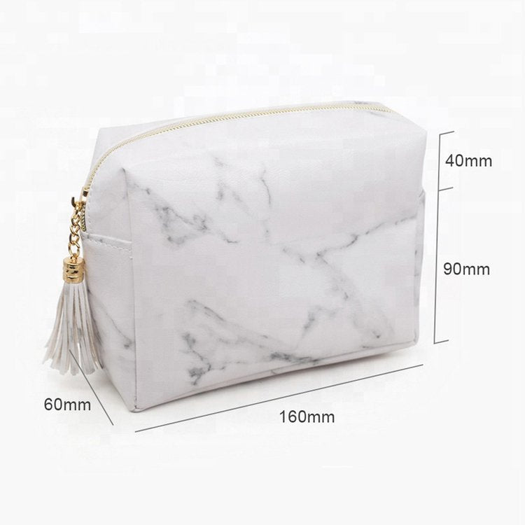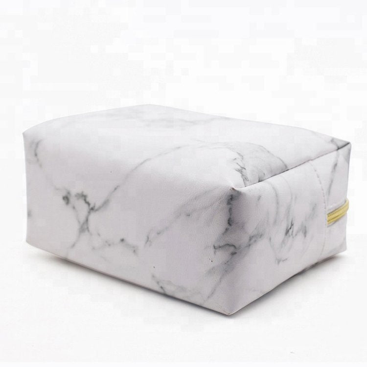 1. 大理石紋化妝包尺寸為16*13*6cm,材質為PU,提供客製化企業LOGO印製服務。