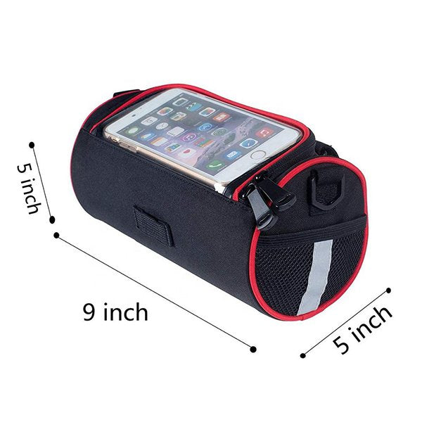 1. 600D聚酯材質製成的自行車防水車頭包,尺寸為23*13*13cm,容量達3.5L,耐用且防水,適合騎行使用。