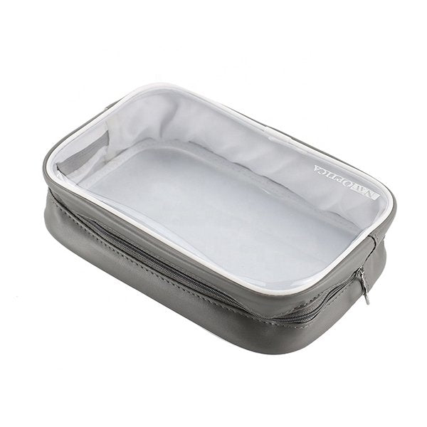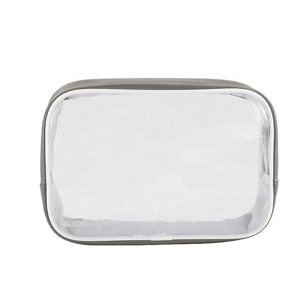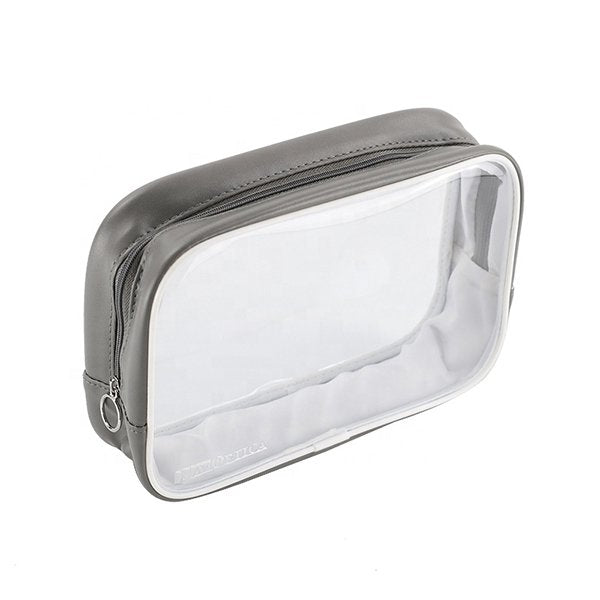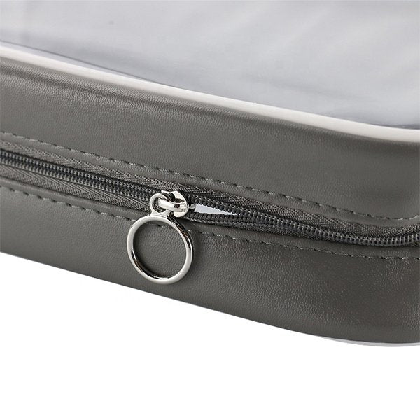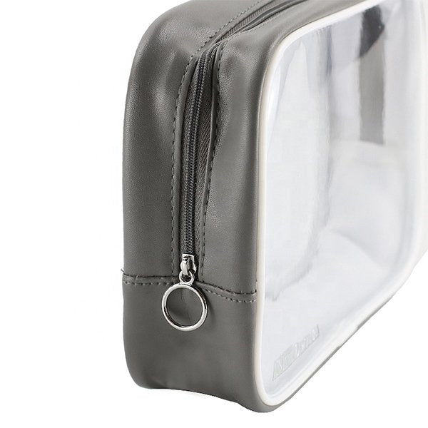 簡約透明拉鍊盥洗包-PVC+PU皮革化妝包