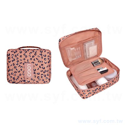 粉色豹紋化妝包/折疊式防水旅行收納盥洗包-21x16x8cm-可客製化印刷企業LOGO或宣傳標語
