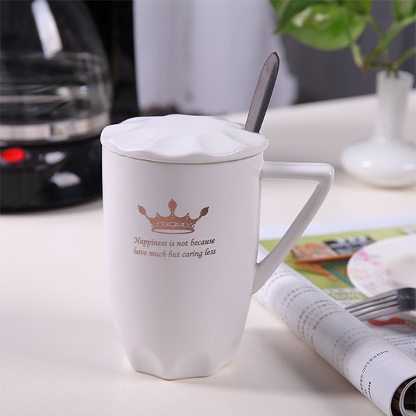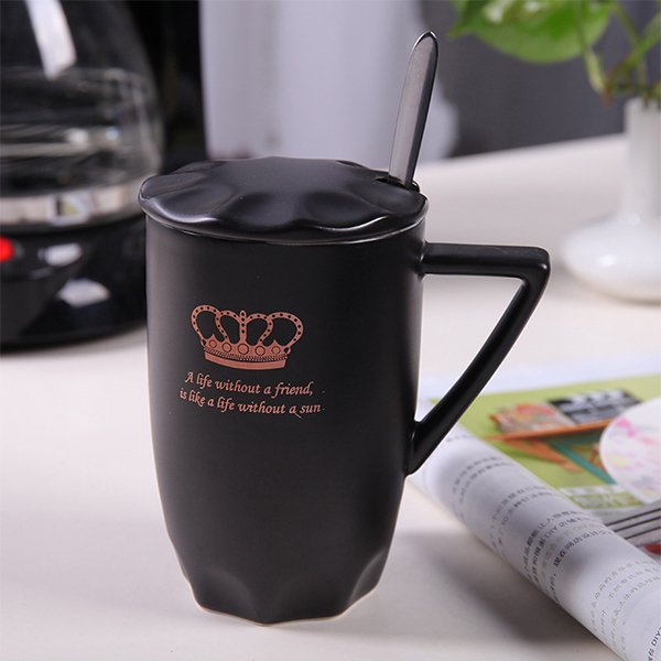 陶瓷馬克杯-附蓋子湯匙-可客製化印刷LOGO