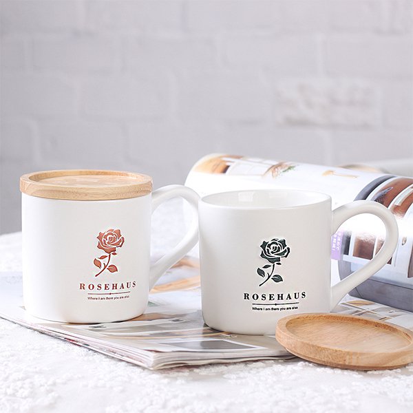 磨砂木蓋陶瓷馬克杯/對杯-可客製化印刷LOGO