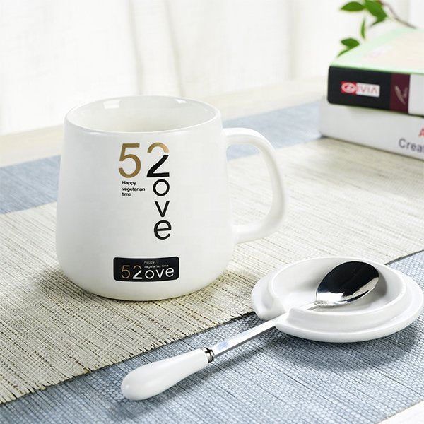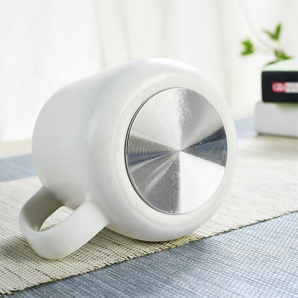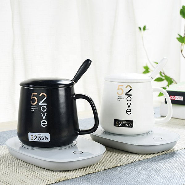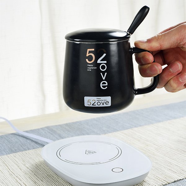 陶瓷馬克杯-350ml附蓋子湯匙(附USB保溫盤)
