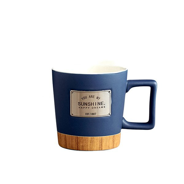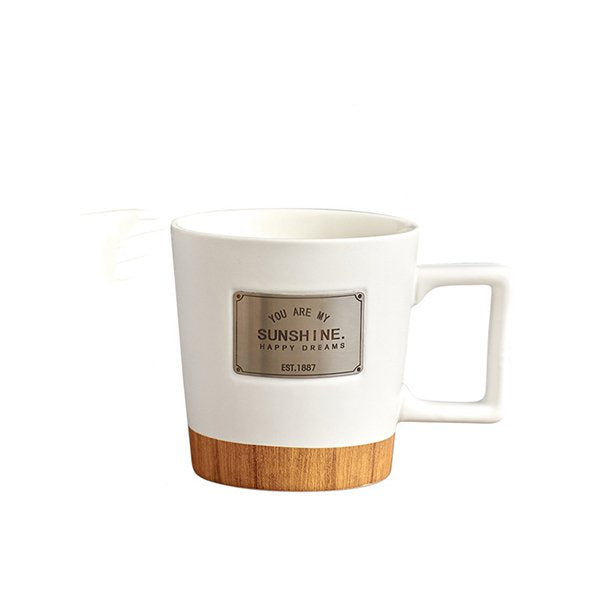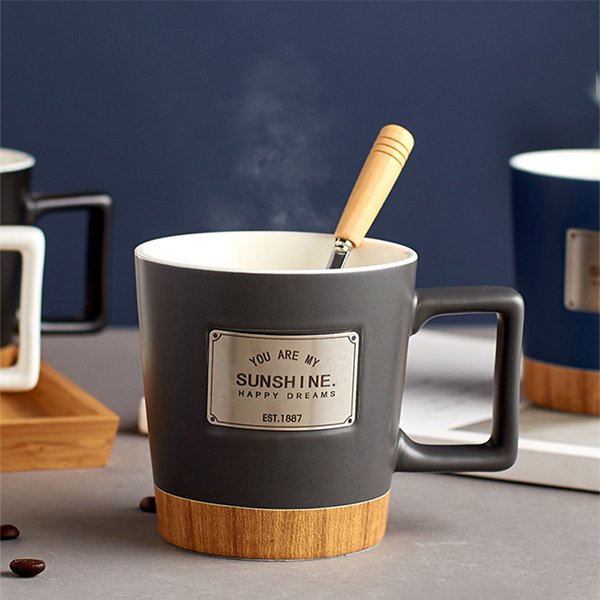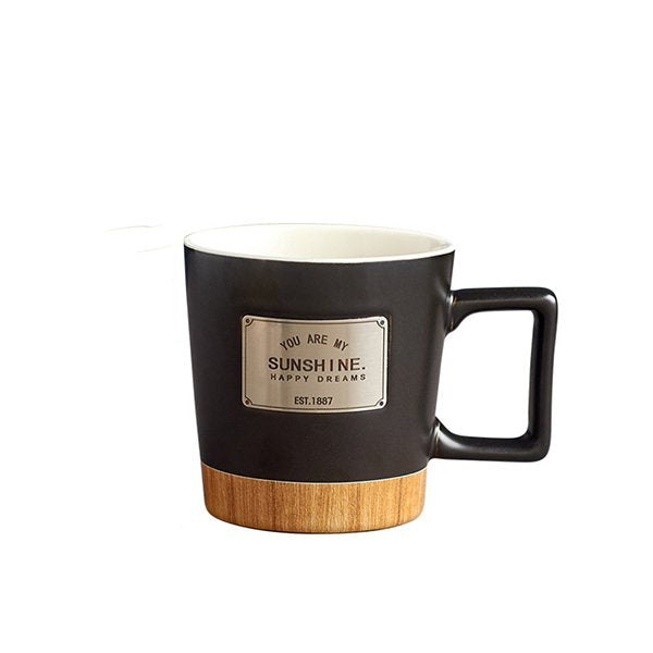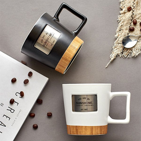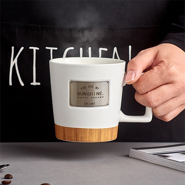 1. 460ml復古木紋方形手把馬克杯,陶瓷材質,經典木紋設計,質感十足。