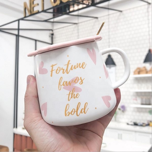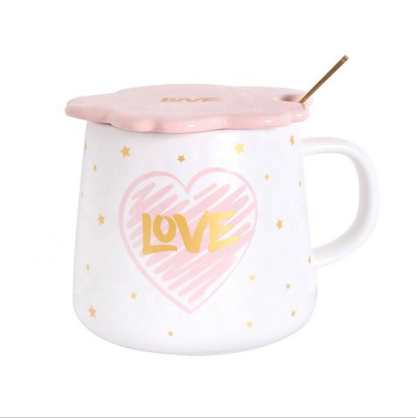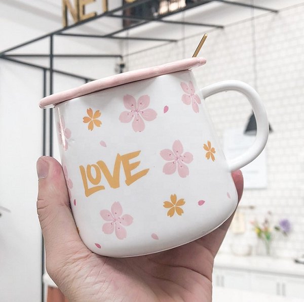 480ml花朵造型陶瓷馬克杯-附蓋子湯匙
