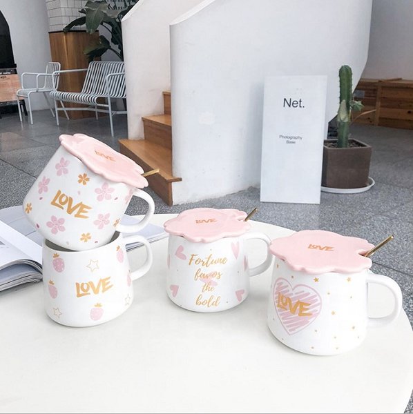 1. 480ml花朵造型陶瓷馬克杯,附蓋子湯匙設計,方便攜帶,讓喝咖啡更有質感。