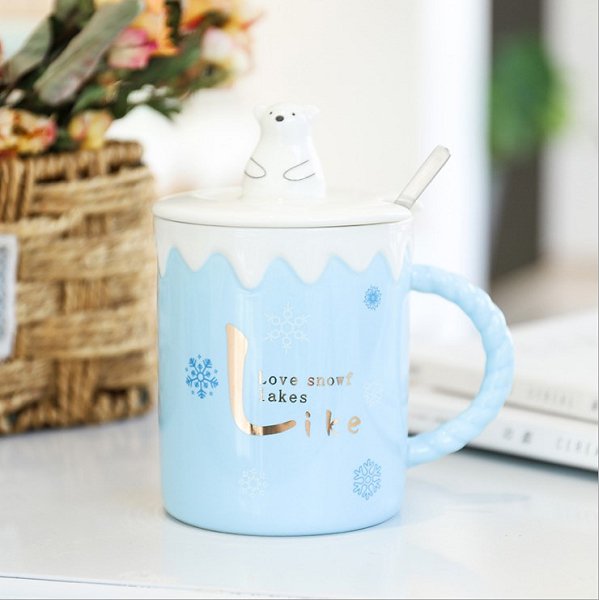 480ml北極熊陶瓷馬克杯-附蓋子湯匙