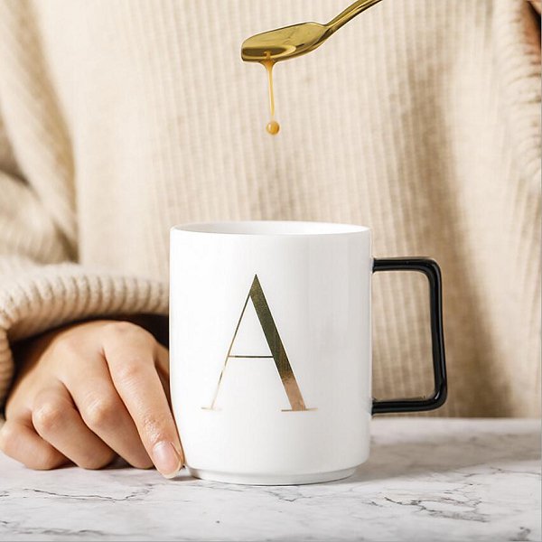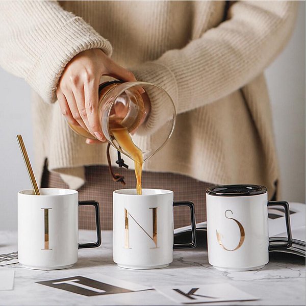 360ml簡約字母陶瓷馬克杯-附蓋子