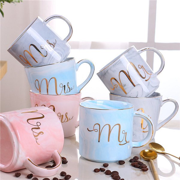 400ml大理石紋字母情侶對杯-陶瓷馬克杯