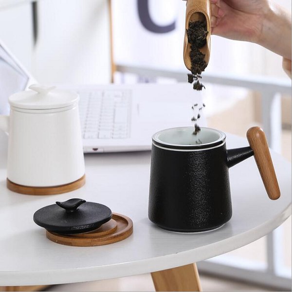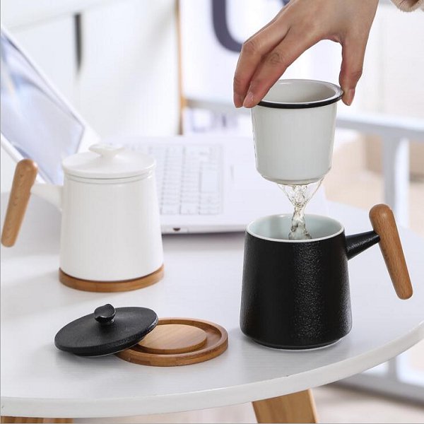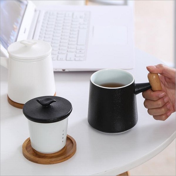 400ml復古木把陶瓷馬克杯-附蓋子/濾茶器