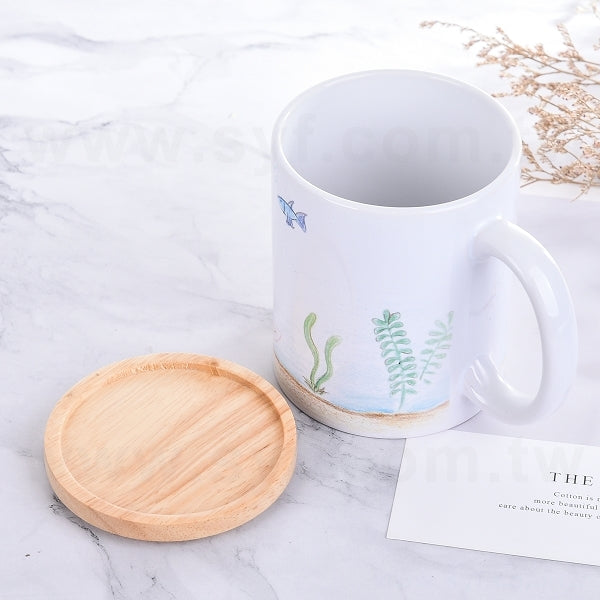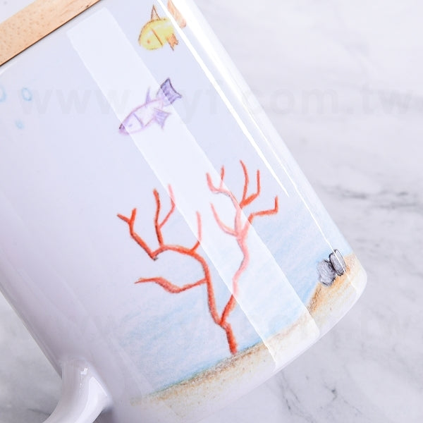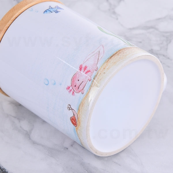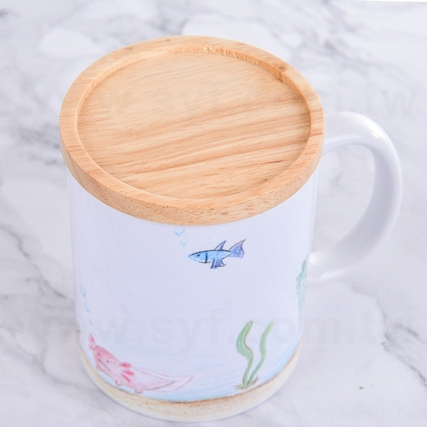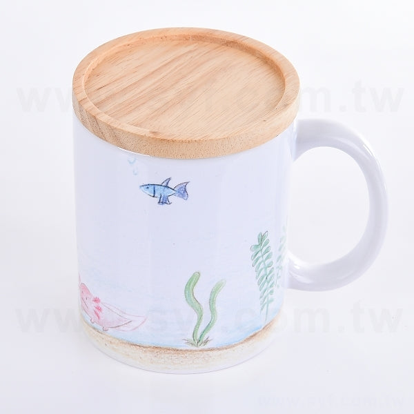 平口馬克杯-白色半瓷330ml-彩色印刷+木蓋