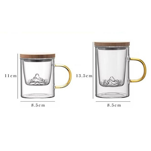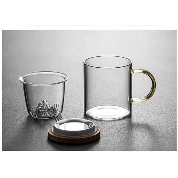 350ML高溫硼矽雙層馬克杯茶水分離玻璃附杯蓋手柄