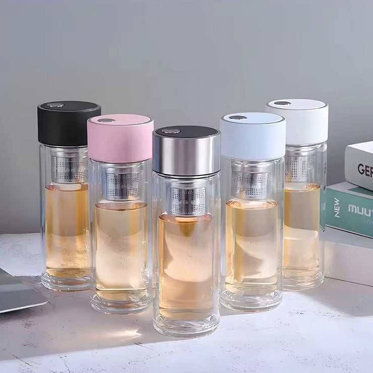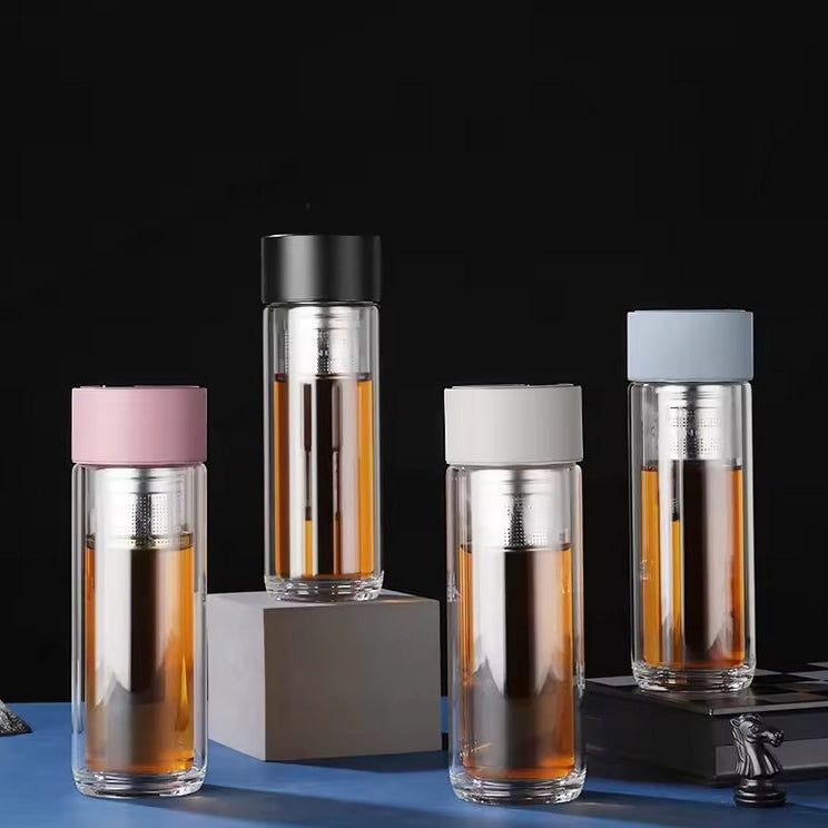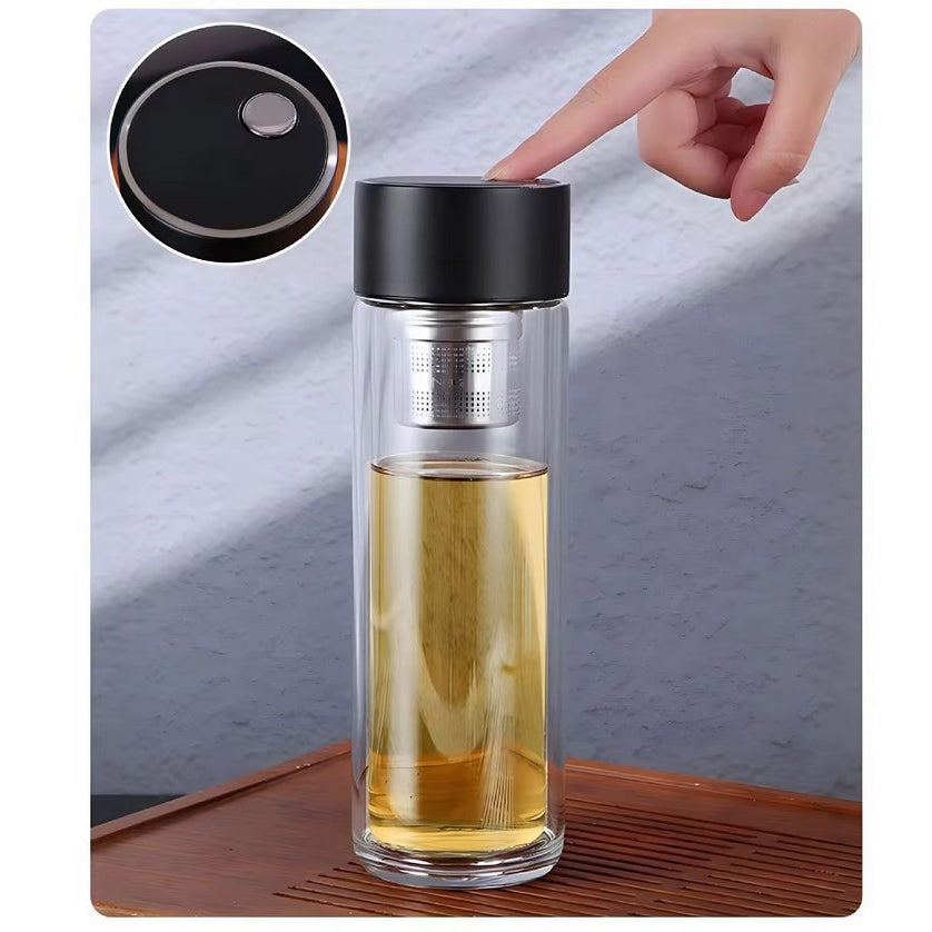 300ml/400ml 磁性雙層高硼矽玻璃水杯分離茶水瓶禮品批發