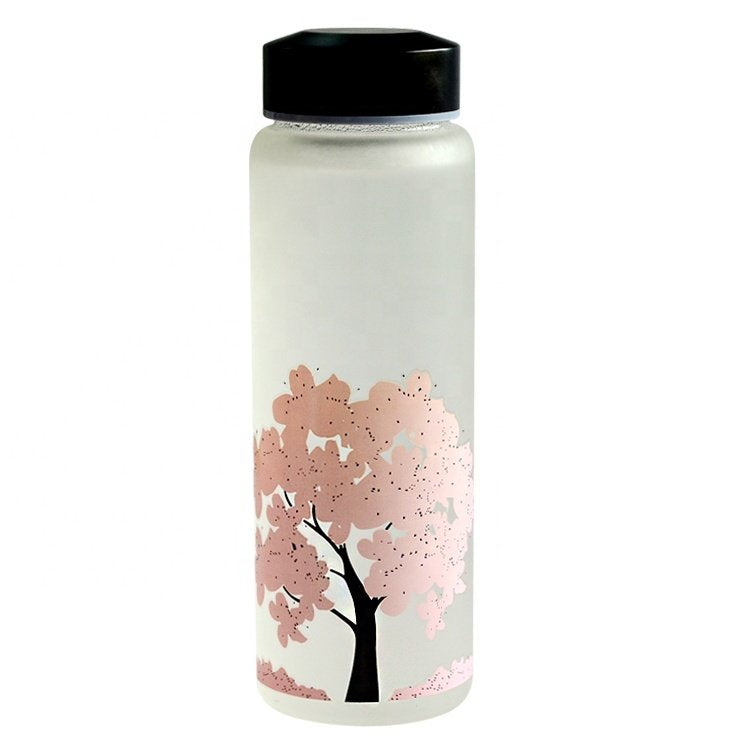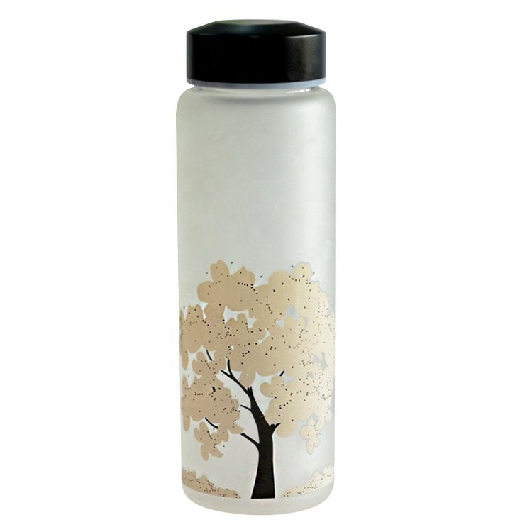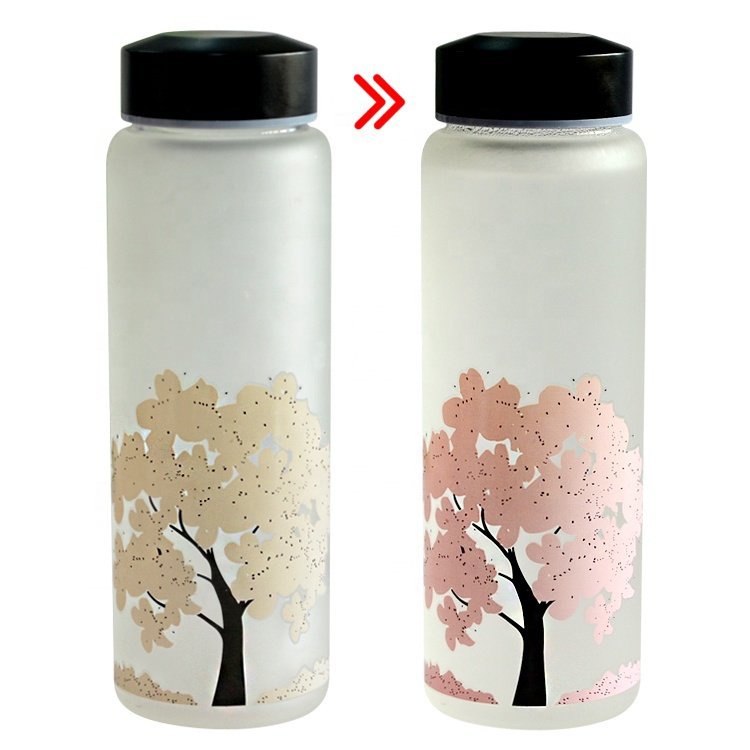 500ml黑蓋旅行變色玻璃水瓶-可客製化印刷企業LOGO
