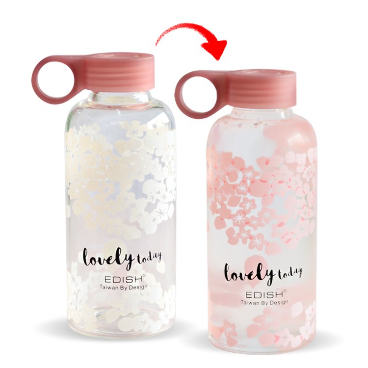 450ml旅行粉紅色杯蓋冷變色玻璃瓶-可客製化印刷企業LOGO