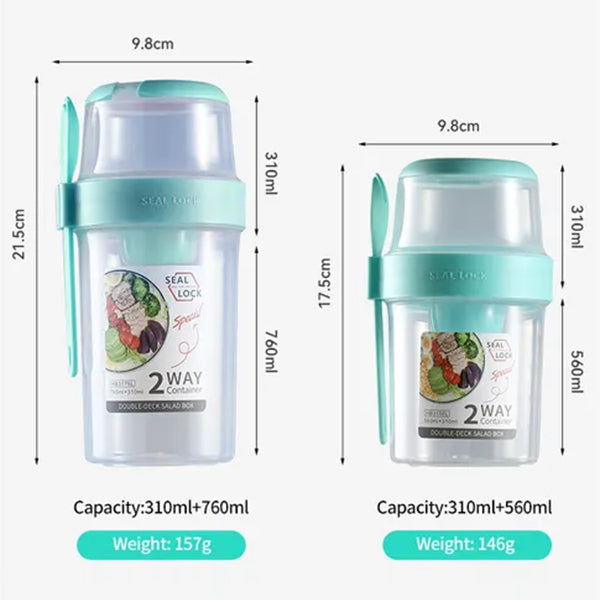 310ml+760ml / 310ml+560ml-?2 合 1 便攜式早餐麥片帶碗頂配勺子沙拉杯