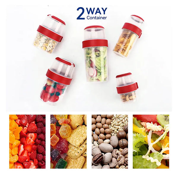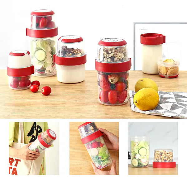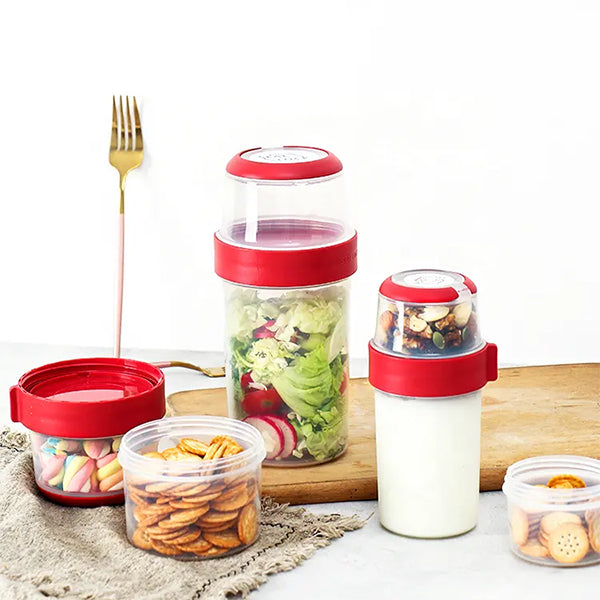 1. 便攜式雙層塑料沙拉盒容器杯帶手柄,方便攜帶,適合辦公室午餐或戶外野餐使用。