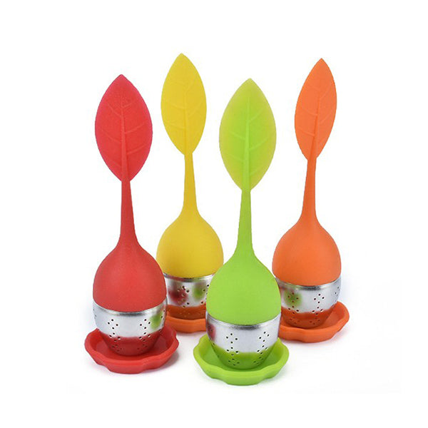 綠葉造型矽膠濾茶器-附小托盤