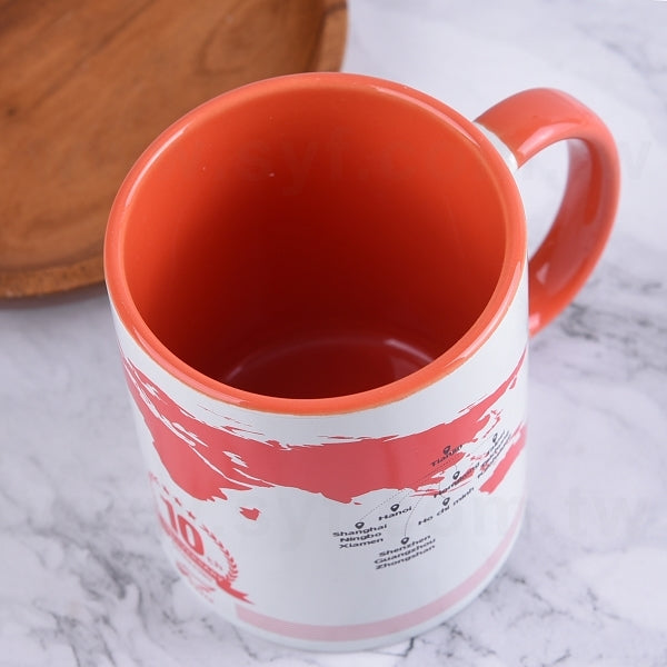 1. 獨特設計的熱感變色陶瓷馬克杯,橙色內彩,讓飲品更有趣。