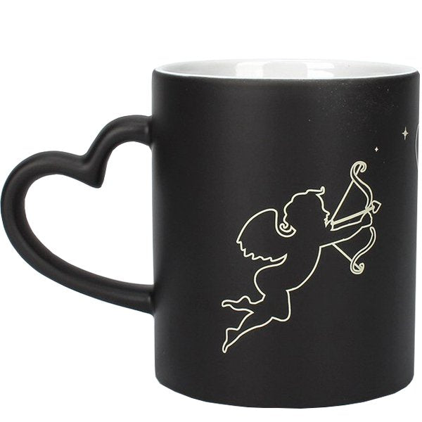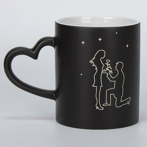 熱變色馬克杯-300ml黑色霧面心型手柄